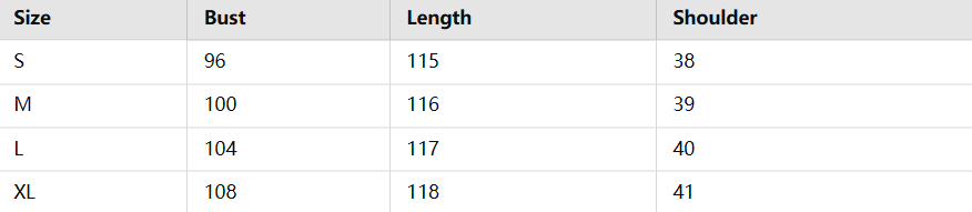 - The size charts may vary due to different products or suppliers. Measurements shown in the size guide refer to measurements of the garment, and not body measurements.