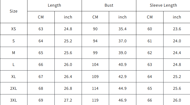 - The size charts may vary due to different products or suppliers. Measurements shown in the size guide refer to measurements of the garment, and not body measurements.