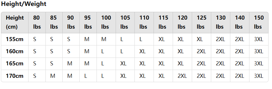 SIZE CHART: