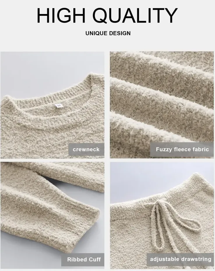 Elevate your lounge style with this ultra-soft fuzzy fleece two-piece set, perfect for staying cozy while looking effortlessly chic. Whether you're relaxing at home or heading out for a casual day, this set combines comfort and modern style. The relaxed fit, drawstring waist, and soft texture make it your go-to outfit for ultimate ease and fashion-forward vibes.