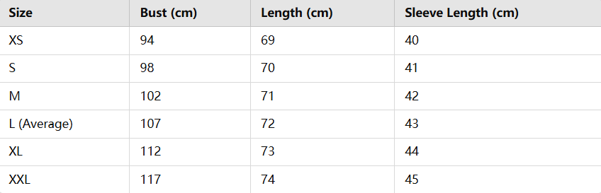 High Elasticity: add 0-0.5cm from the garment measurement to body measurement.